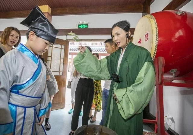 着汉服,行古礼,点雄黄、沐兰汤……2020年6月25日上午,展茅街道干施岙礼孝学堂里,30余名少年儿童在家长陪同下,开展了一场别开生面的“端午”主题亲子活动。
